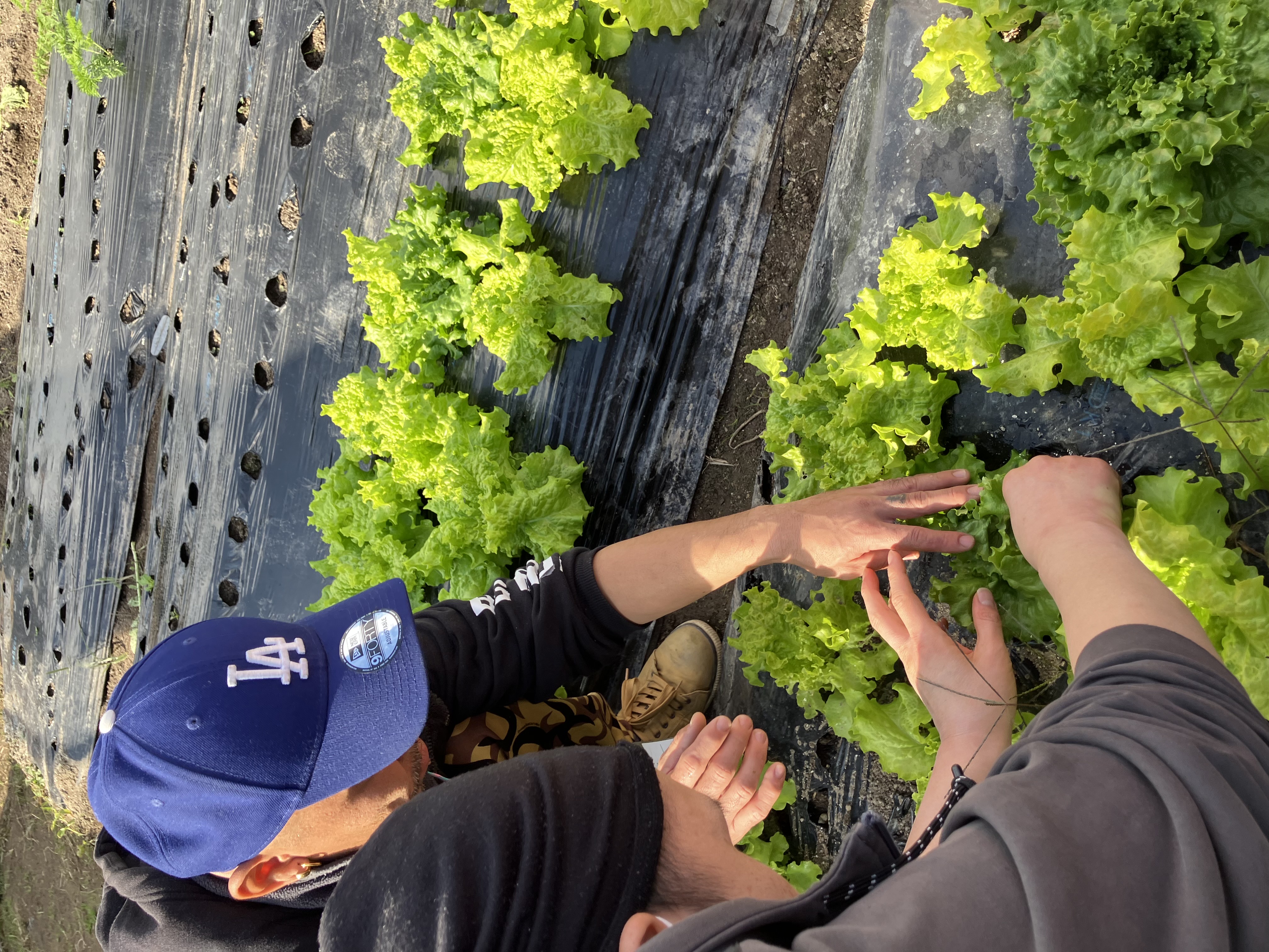 大きい!ここでもみんなで大きいのをちぎって収穫しました。